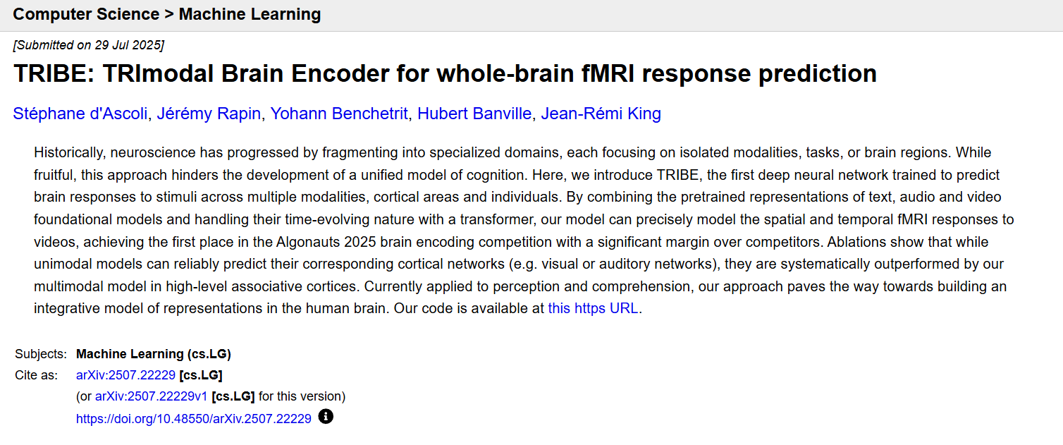 5️⃣ Meta TRIBE模型赢得脑建模竞赛